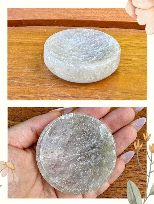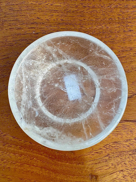 Petite coupelle ronde en quartz cristal de roche - support pour les bijoux