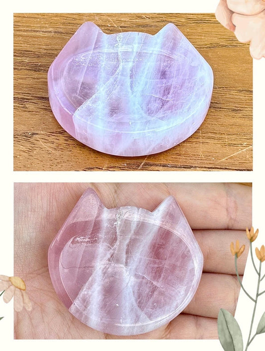 Petite coupelle tête de chat en quartz rose - support pour les bijoux
