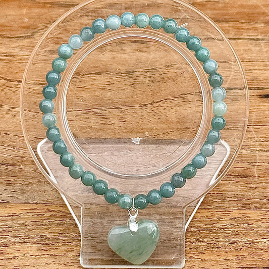Bracelet en jade pendent cœur pierre naturelle semi précieuse