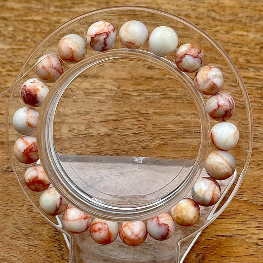 Bracelet perles rondes en calcite à veine rouge pierre semi précieuse