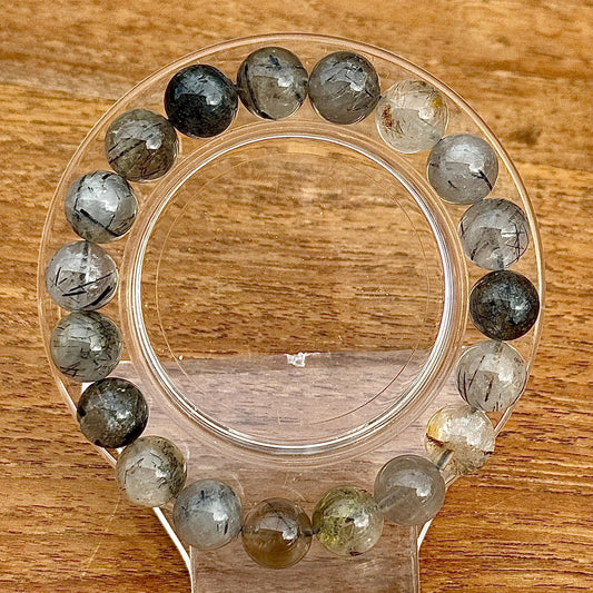 Bracelet en perles rondes en quartz et rutile tourmaline pierre semi précieuse