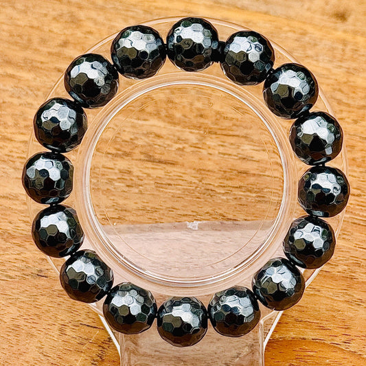 Bracelet perles rondes facettées en hématite pierre semi précieuse