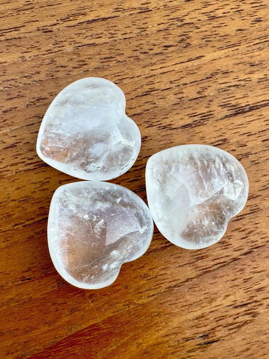 3 minis coeurs en quartz - cristal de roche pierre semi précieuse
