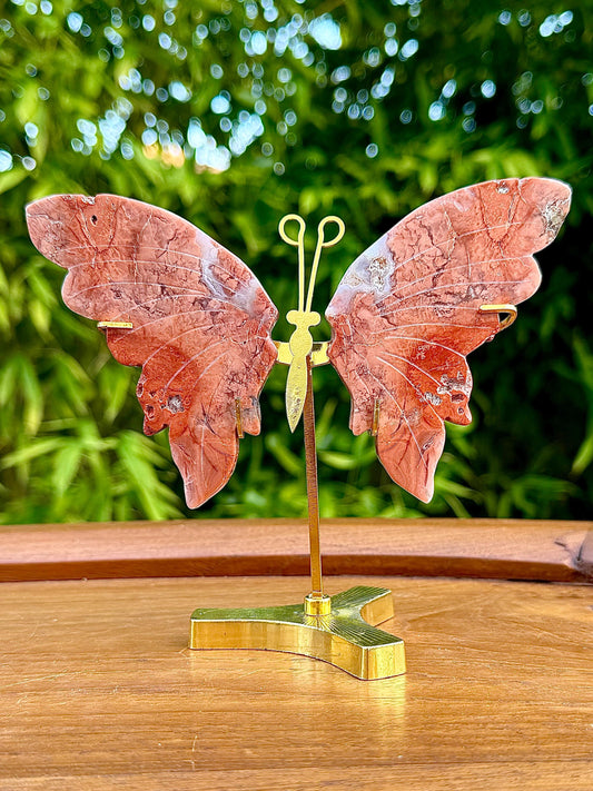 Ailes papillon en chalcedoine rose pierre semi précieuse