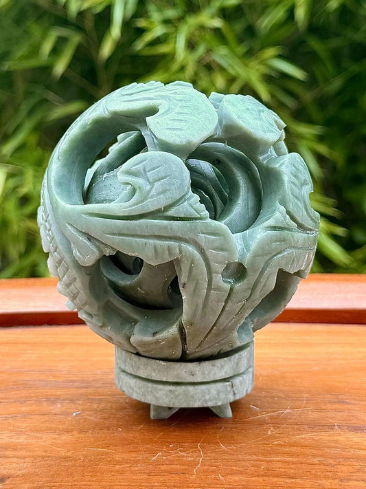 Sphere canton en jade - puzzle chinois - pierre naturelle semi précieuse