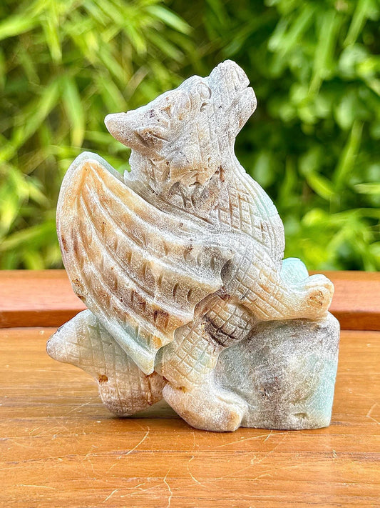Sculpture de griffon en amazonite pierre naturelle semi-précieuse