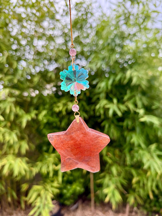 Décoration suspension de Noël étoile en quartz fraise pierre naturelle semi précieuse