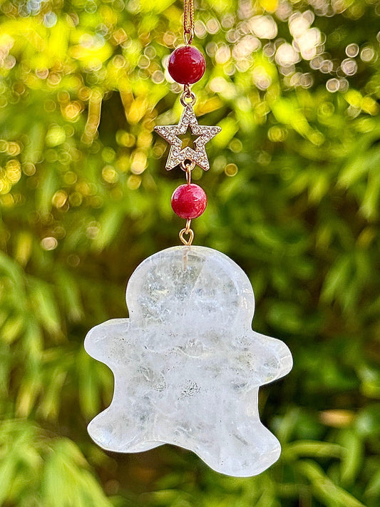 Décoration suspension de Noël bonhomme pain d’épice en quartz / quartz hematoide pierre naturelle semi précieuse