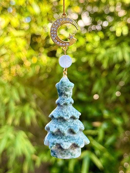 Décoration suspension de Noël sapin en pierre naturelle semi précieuse