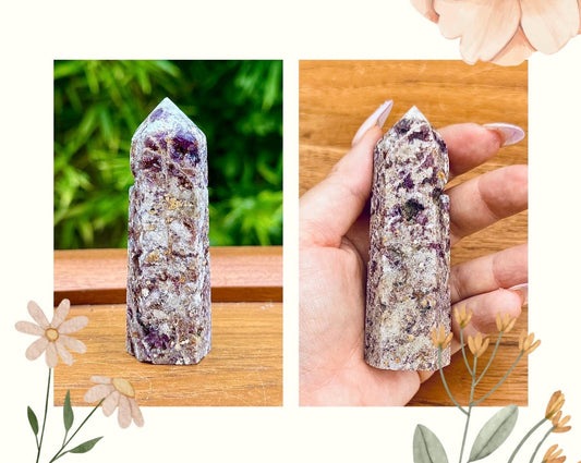 Tour sphalerite violette pierre naturelle semi précieuse